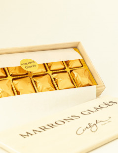 Composition : Marron confit enrobé d’une fine pellicule de glace translucide. Sa texture est tendre et le gout de marron est rehaussé d’une note subtile de vanille en gousse Bourbon de Madagascar.